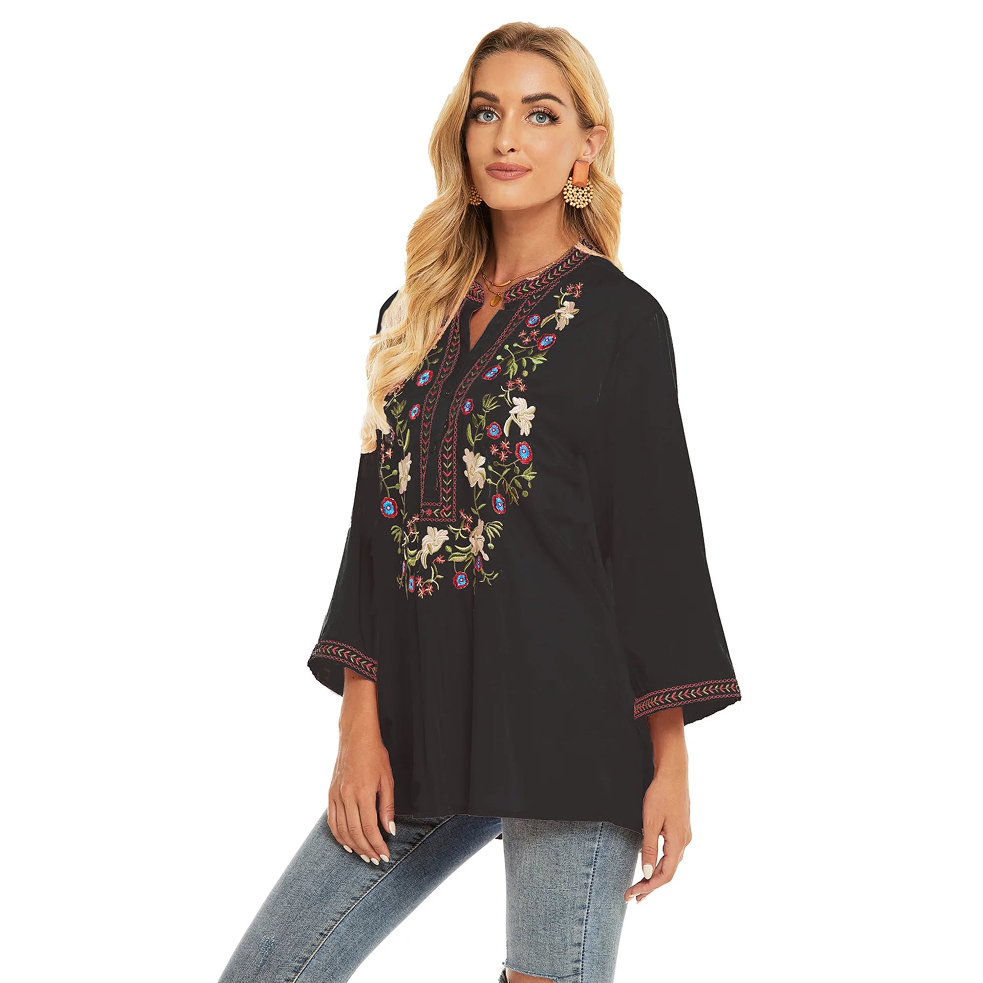 ✅ Floral Embroidery: Adds a touch of vintage elegance, making the blouse a standout piece.