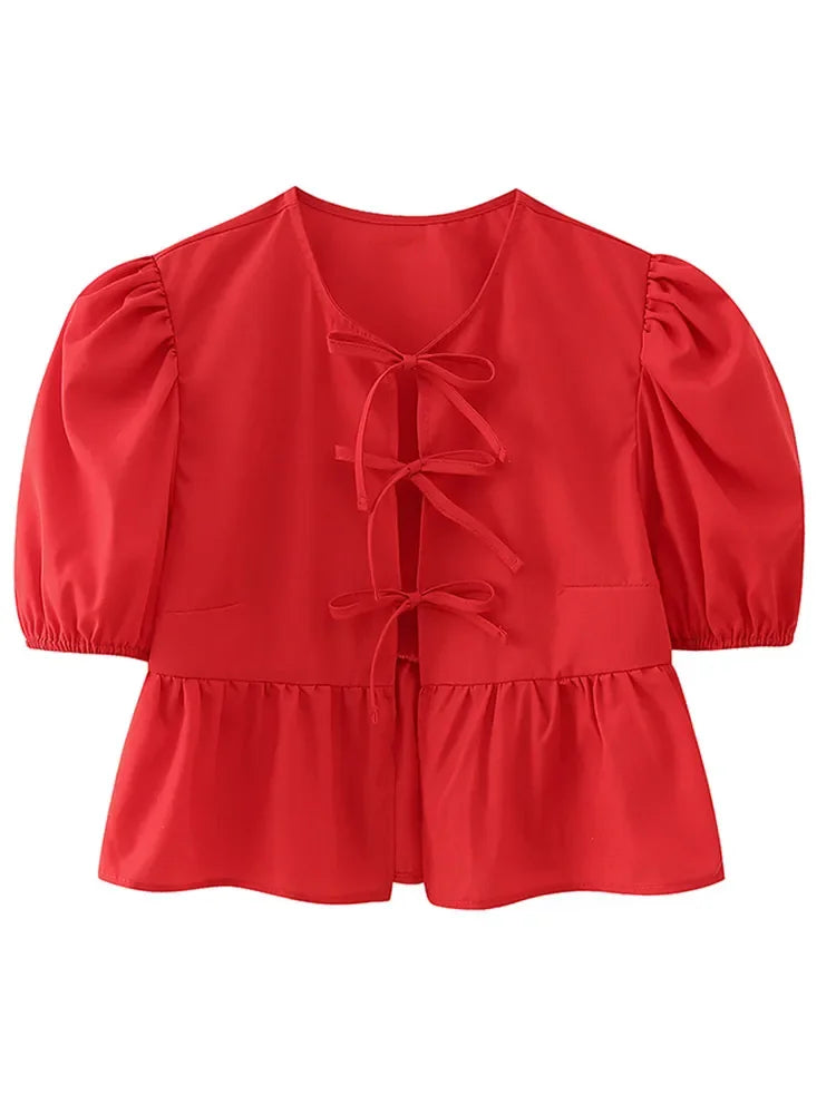 Chic Bow Detail: The statement bow design adds a unique flair, making this top the perfect choice for those looking to make a stylish impression.