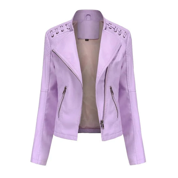 Experience the perfect blend of fashion and functionality with the Chloe leather jacket. The long sleeve, zipper design provides a modern look, while the slim, motorcycle biker style ensures a flattering fit for any body type. Elevate your style effortlessly.