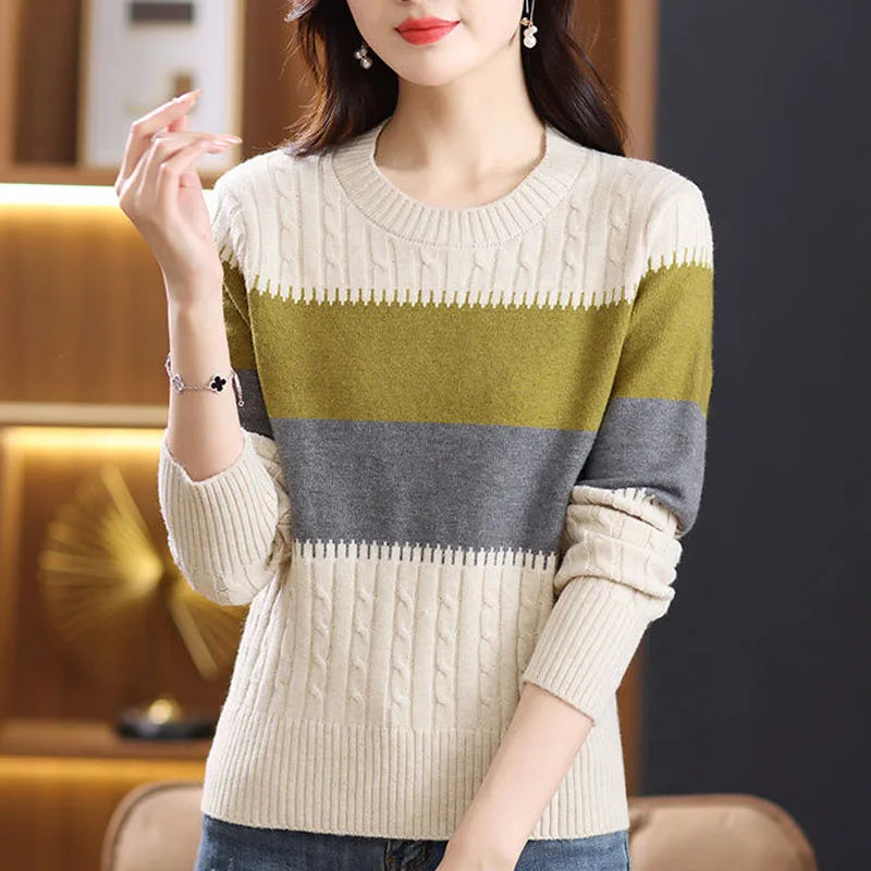 Wrap yourself in the luxurious warmth of the Eveline™ sweater. Designed with a round neck and long sleeves, this loose-fitting, versatile sweater is perfect for keeping you cozy and fashionable during the colder months.